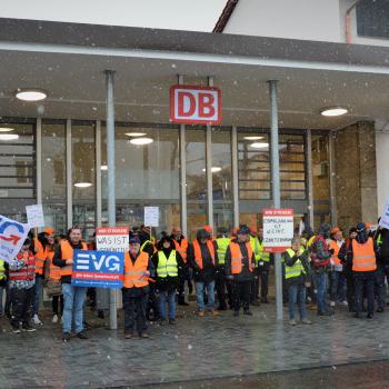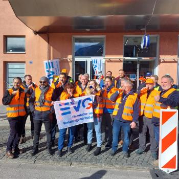 In Weilheim und Garmisch-Partenkirchen haben am 1. Warnstreik insgesamt etwa 150 Kolleginnen und Kollegen teilgenommen, unternehmensübergreifend. Vor Ort waren Mitglieder von DB Regio (Schiene + Bus), DB Netz und der BRB.
